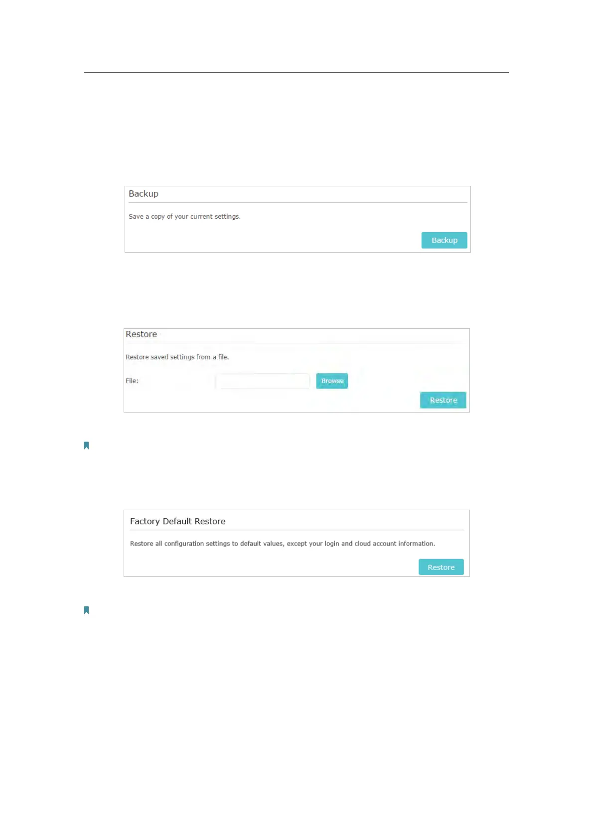 Click Backup to save a copy of the current settings to your local computer. A ‘.bin’ file of