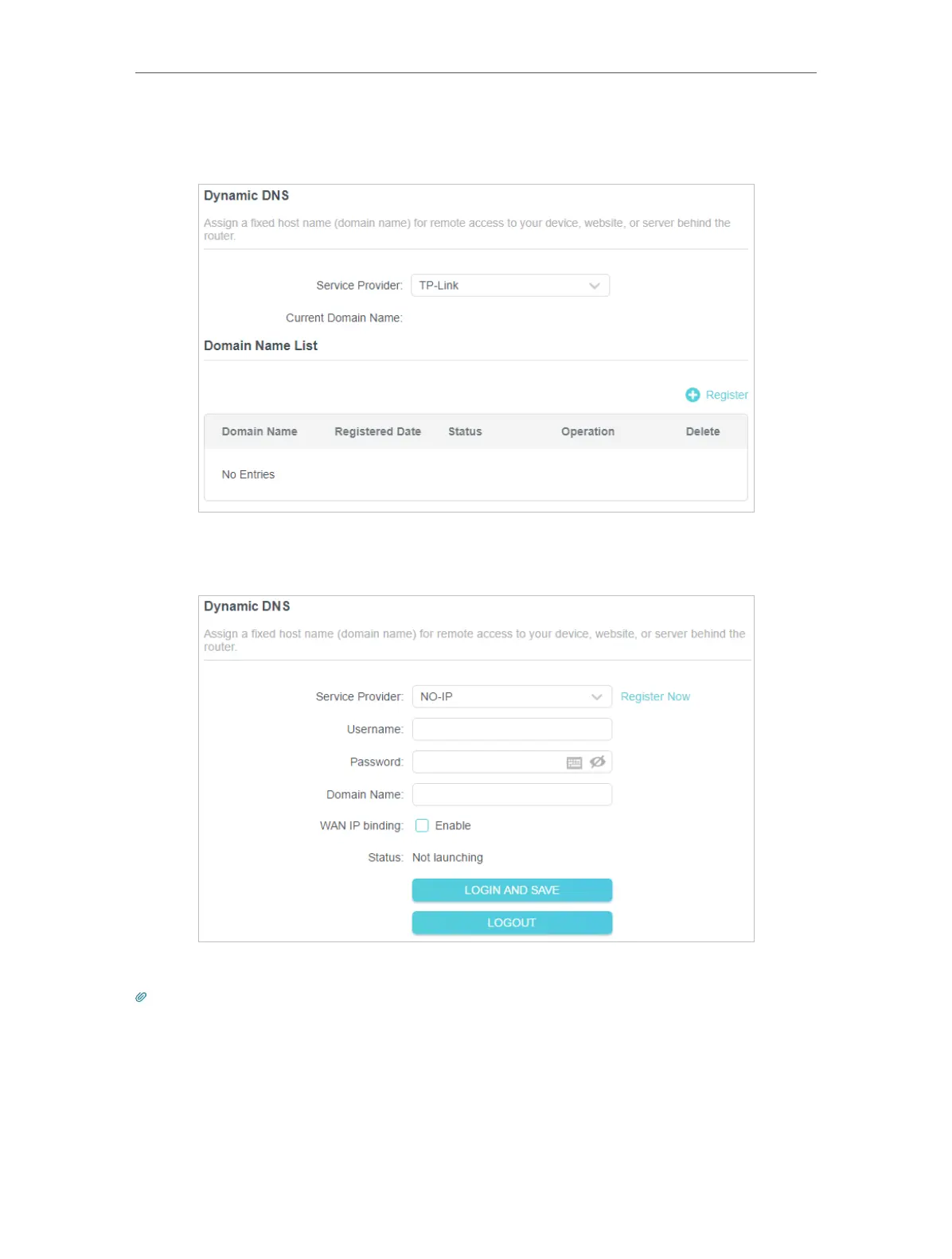 4. Click Register in the Domain Name List if you have selected TP-Link, and enter the