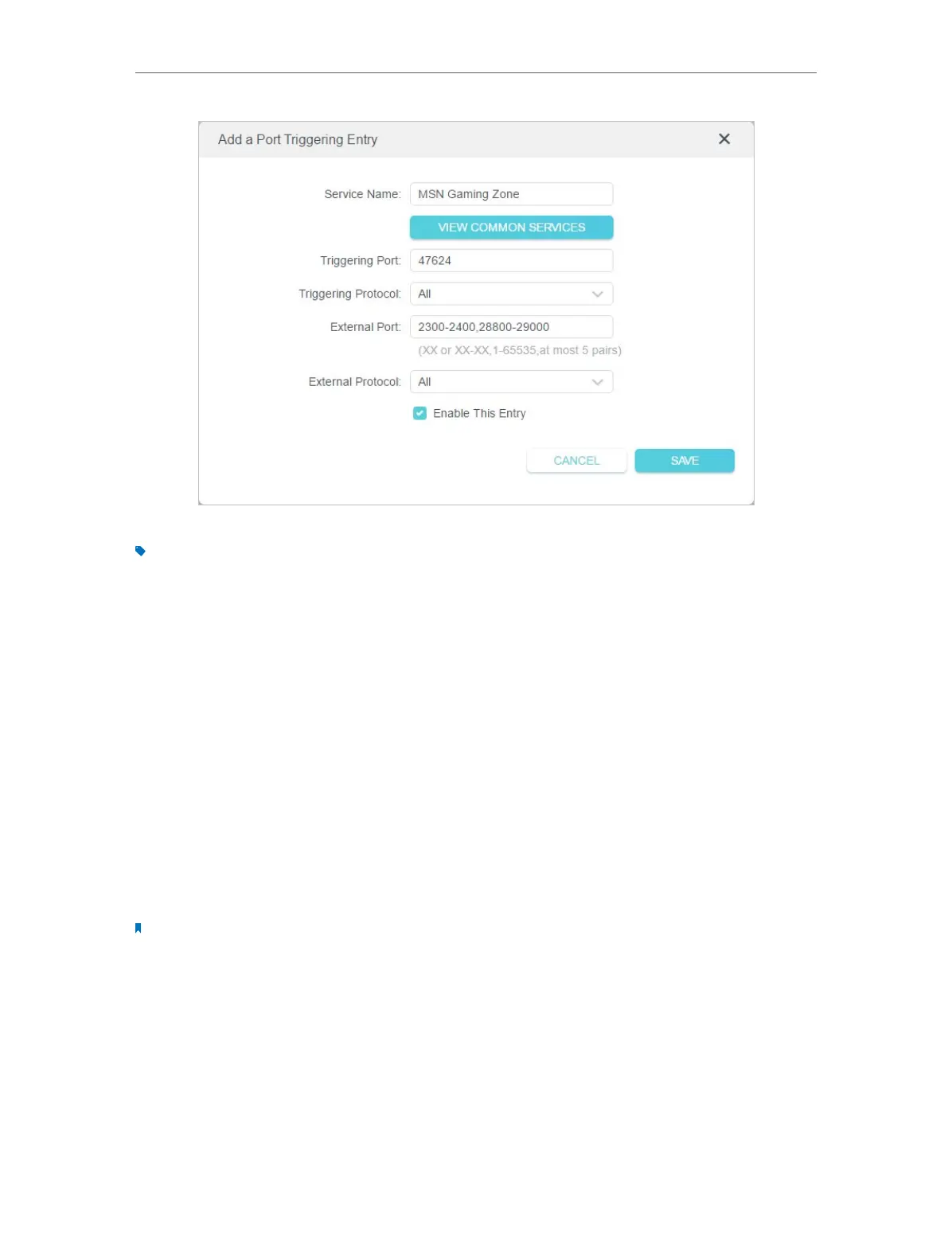 should verify the external ports the application uses first and enter them into External Port field according to the