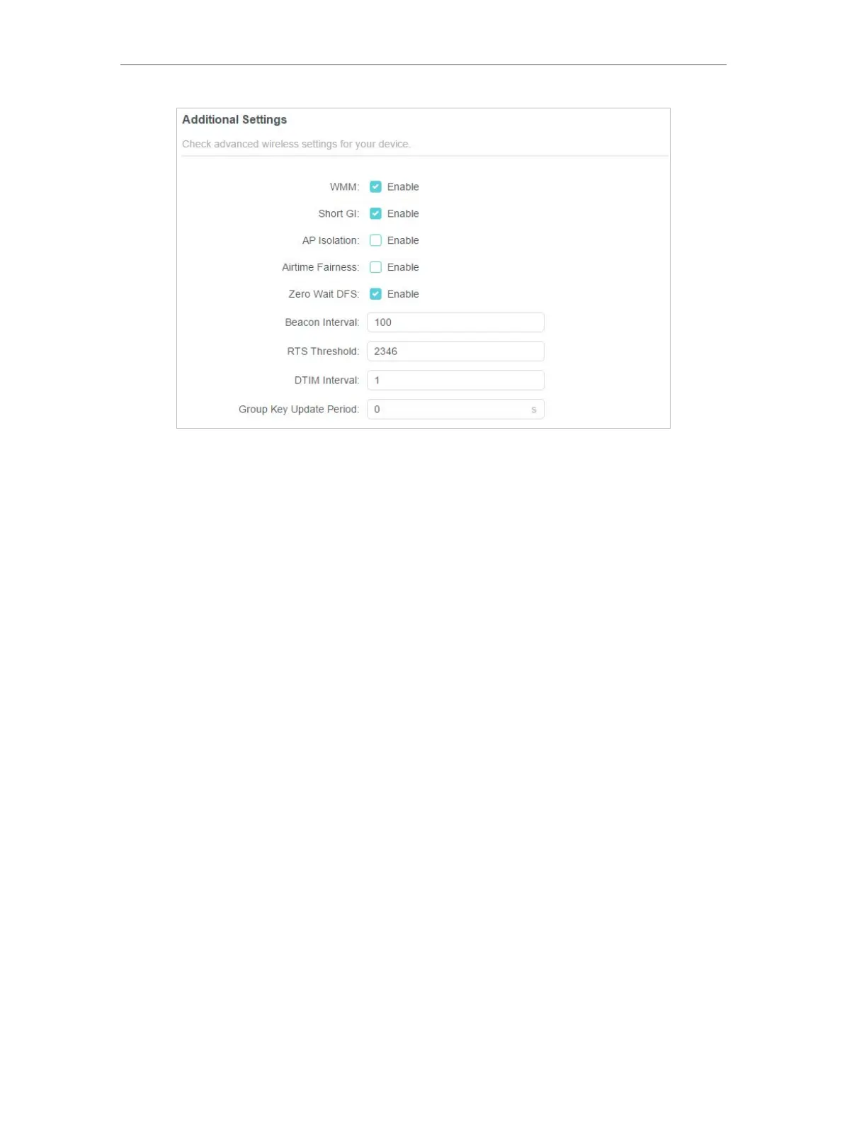 • Group Key Update Period - Enter a number of seconds (minimum 30) to control the