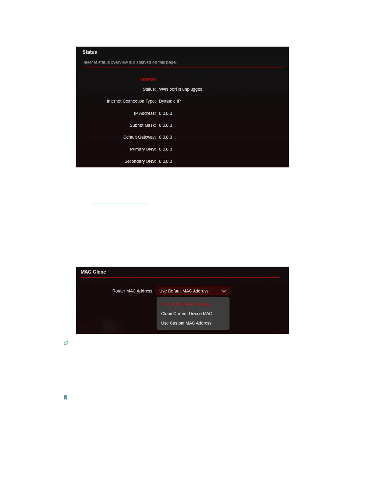 2 ) Go to Internet or Advanced > Network > Internet and focus on the MAC Clone