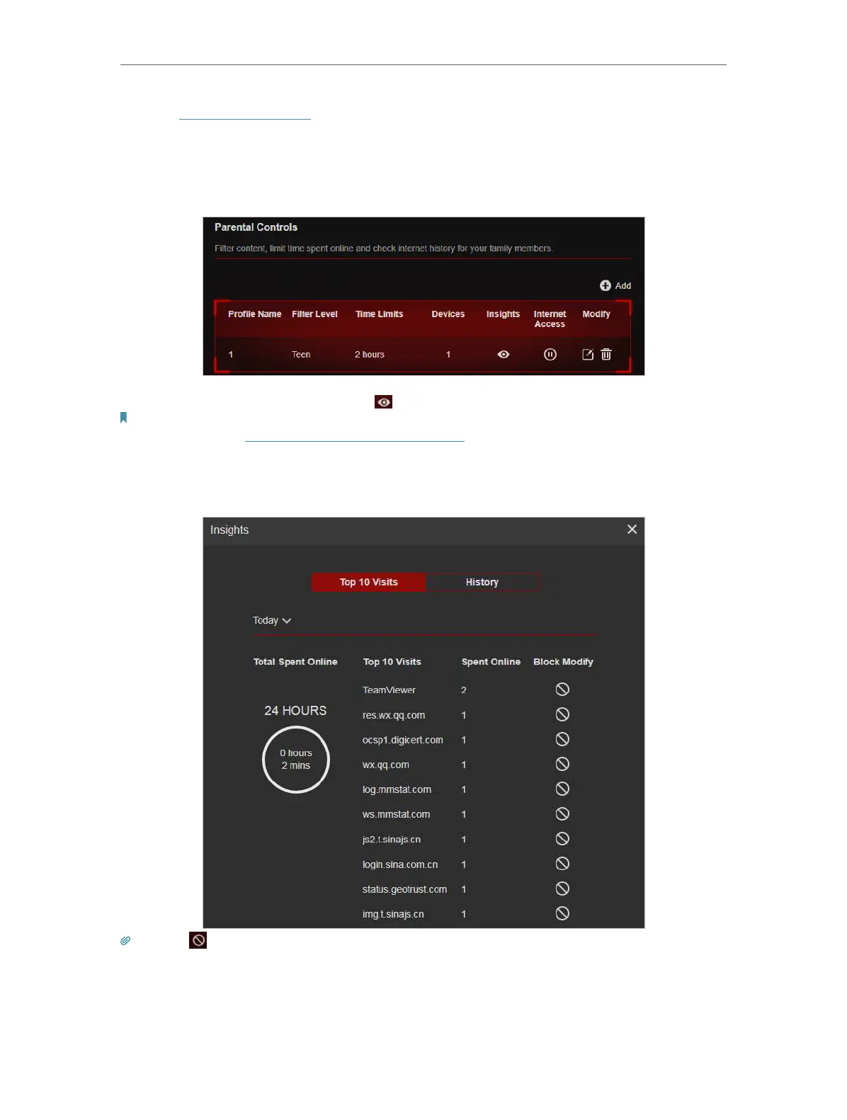 4. Use the drop-down menu to view the websites visited and time spent online for any