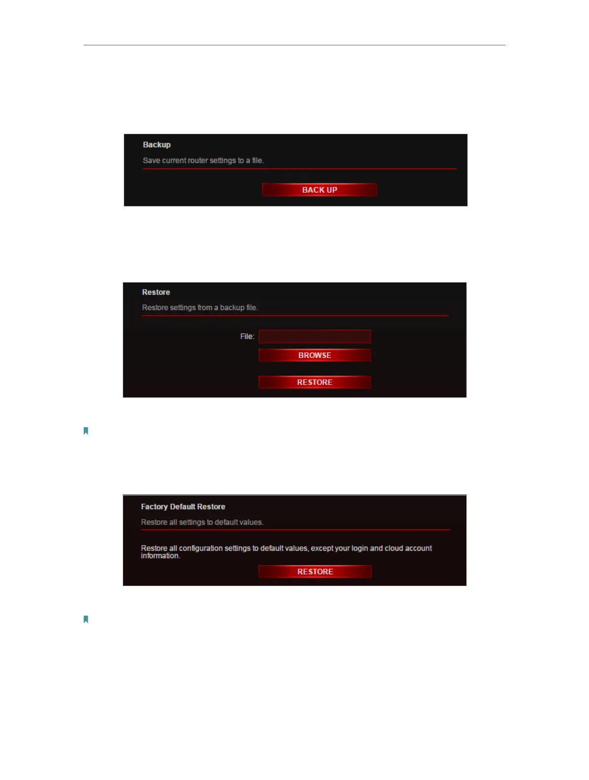 Click BACK UP to save a copy of the current settings to your local computer. A ‘.bin’ file