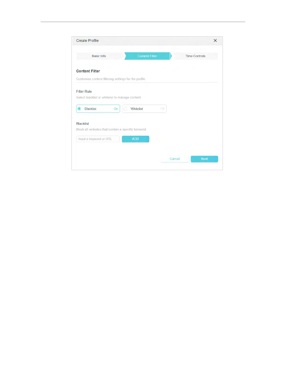 1 ) In Filter Rule, select Blacklist or Whitelist to manage content.