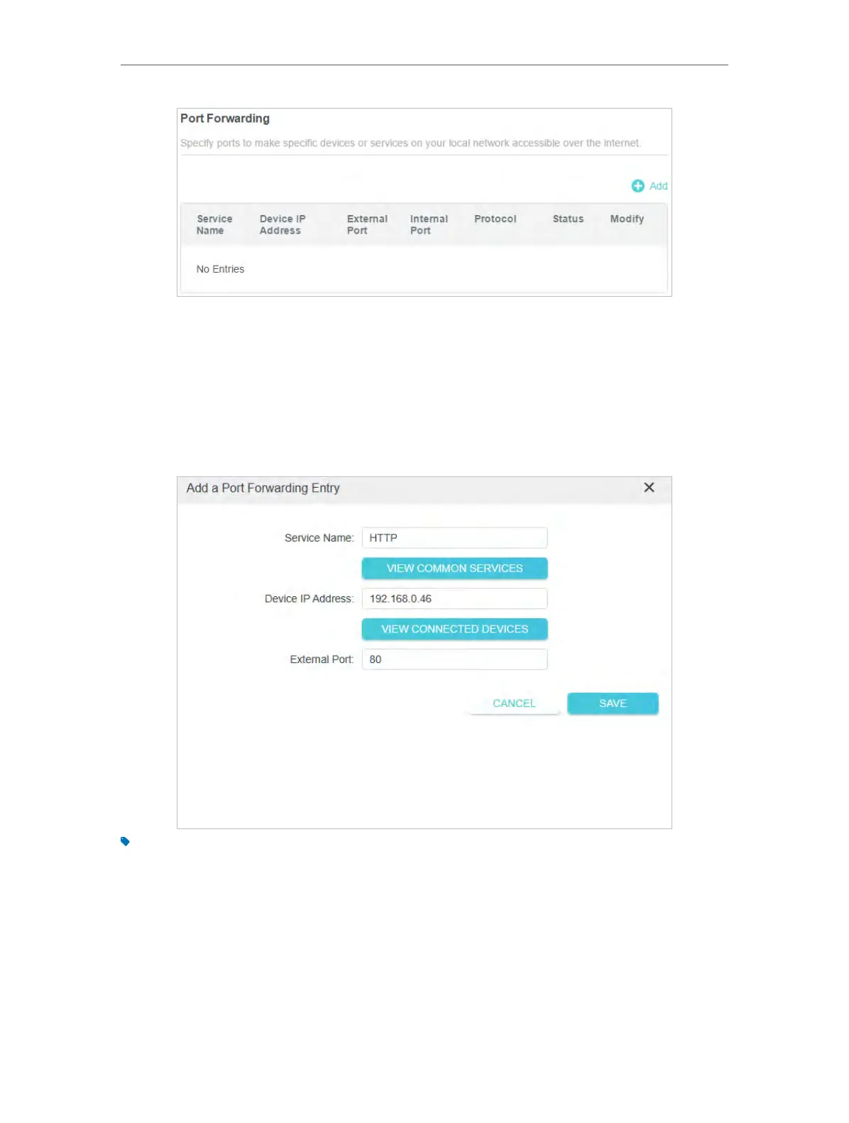 • You can add multiple port forwarding rules if you want to provide several services in a router. Please note that the