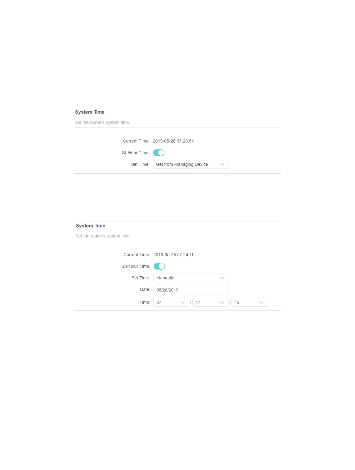 1. In the Set Time field, select Manually.