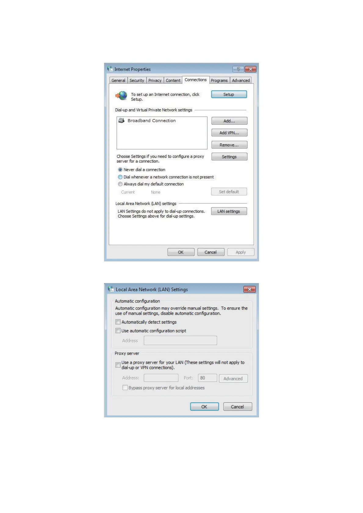 4 ) Click LAN settings and deselect the following three options and click OK.