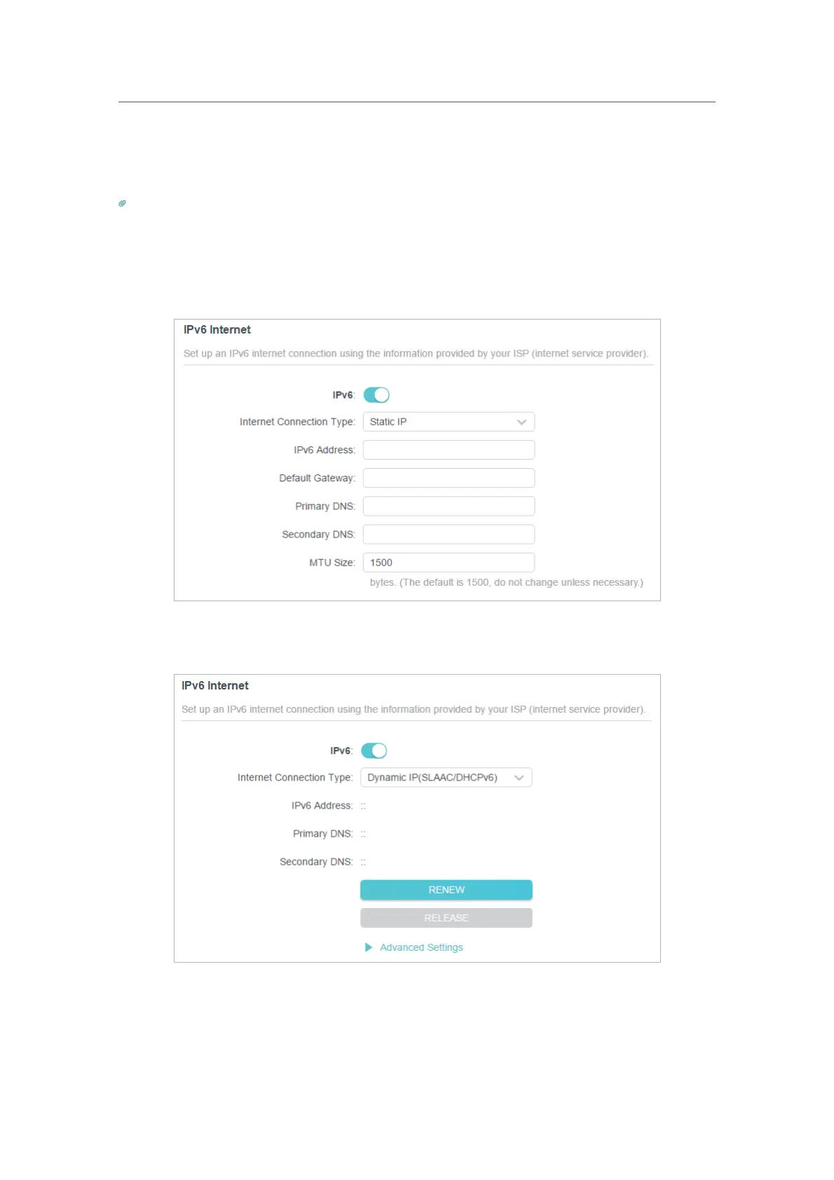 2 ) Dynamic IP(SLAAC/DHCPv6): Click Advanced to input further information if