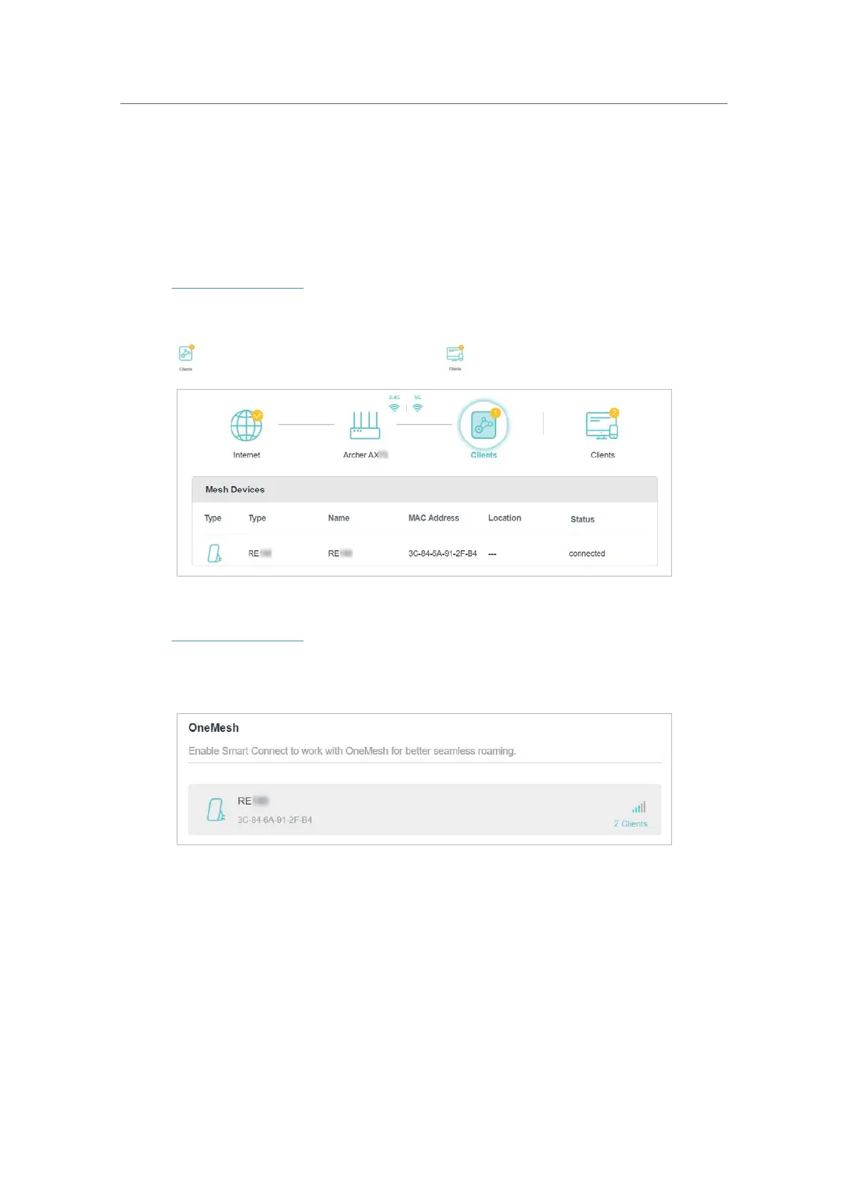 to view all mesh devices, and click to view all connected clients.