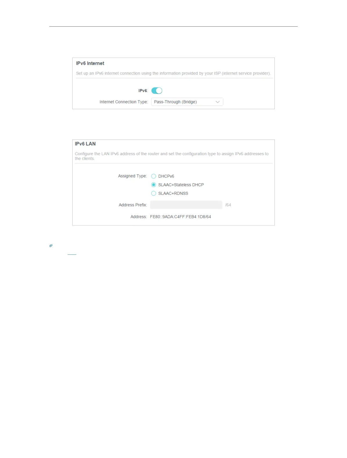 types. Fill in Address Prefix provided by your ISP, and click SAVE .