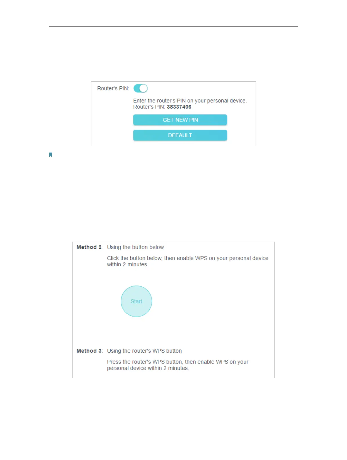 Select Router’s PIN in Method 1 to enable Router’s PIN. You can use the default PIN or