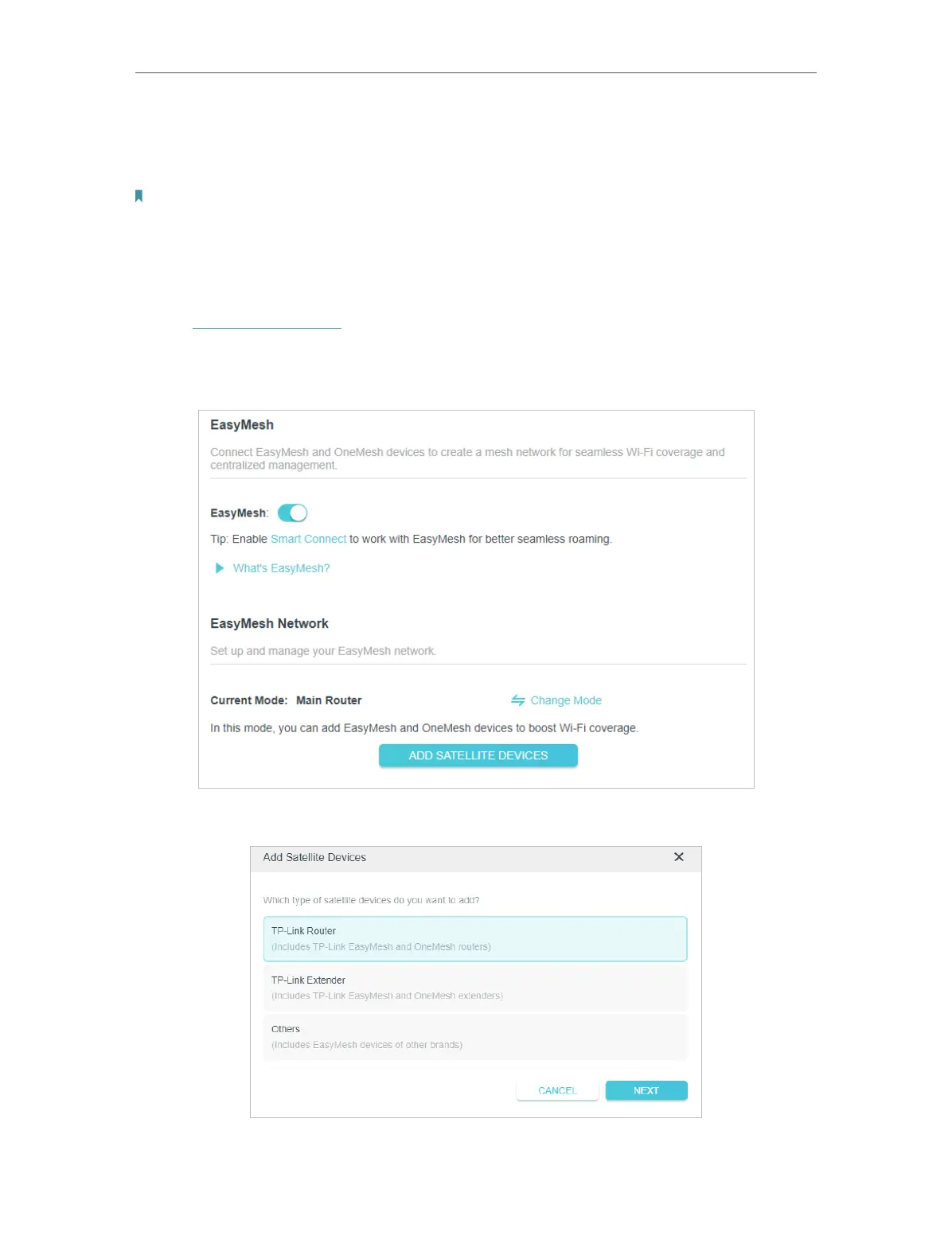 3. Click ADD SATELLITE DEVICES, select TP-Link Router, then click NEXT.