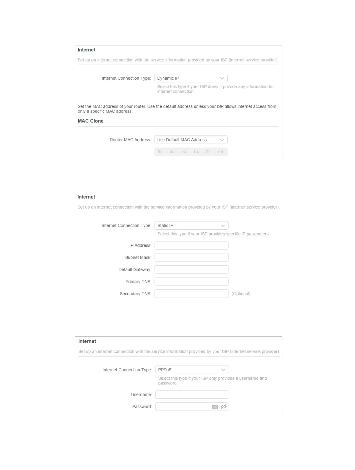 3 ) If you choose PPPoE, enter the username and password provided by your ISP.