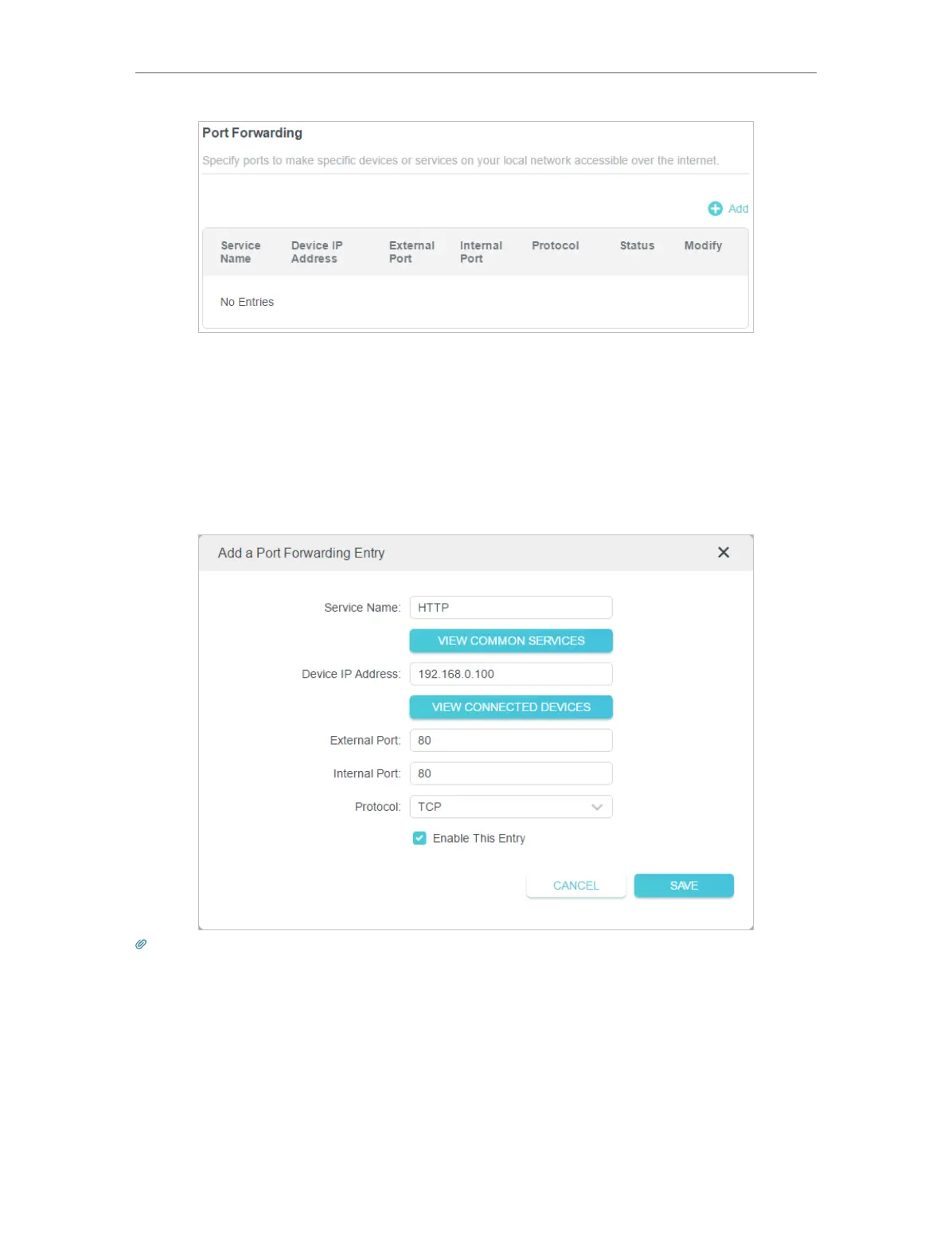 • You can add multiple port forwarding rules if you want to provide several services in a router. Please note that the