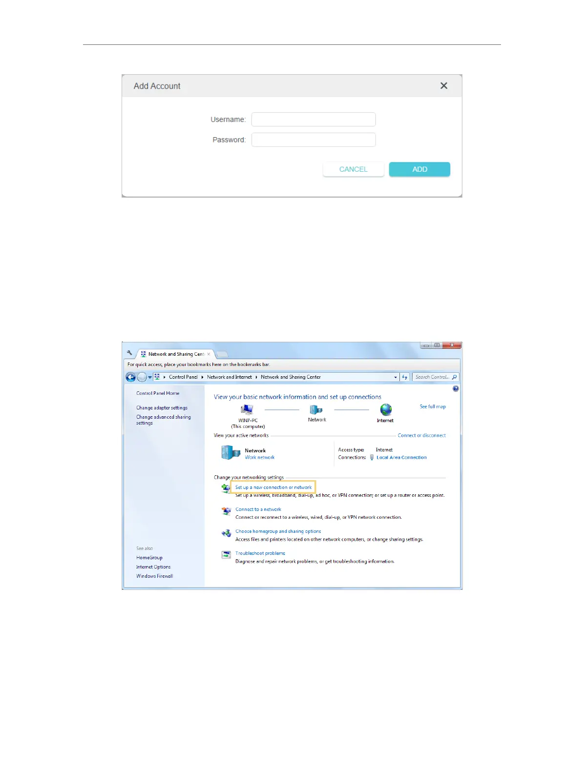 1. Go to Start > Control Panel > Network and Internet > Network and Sharing Center.