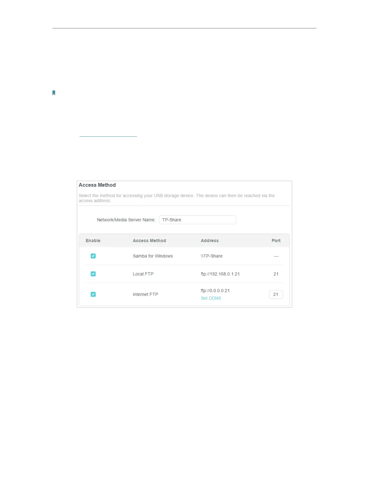 4. Refer to the following table to access your USB disk remotely.