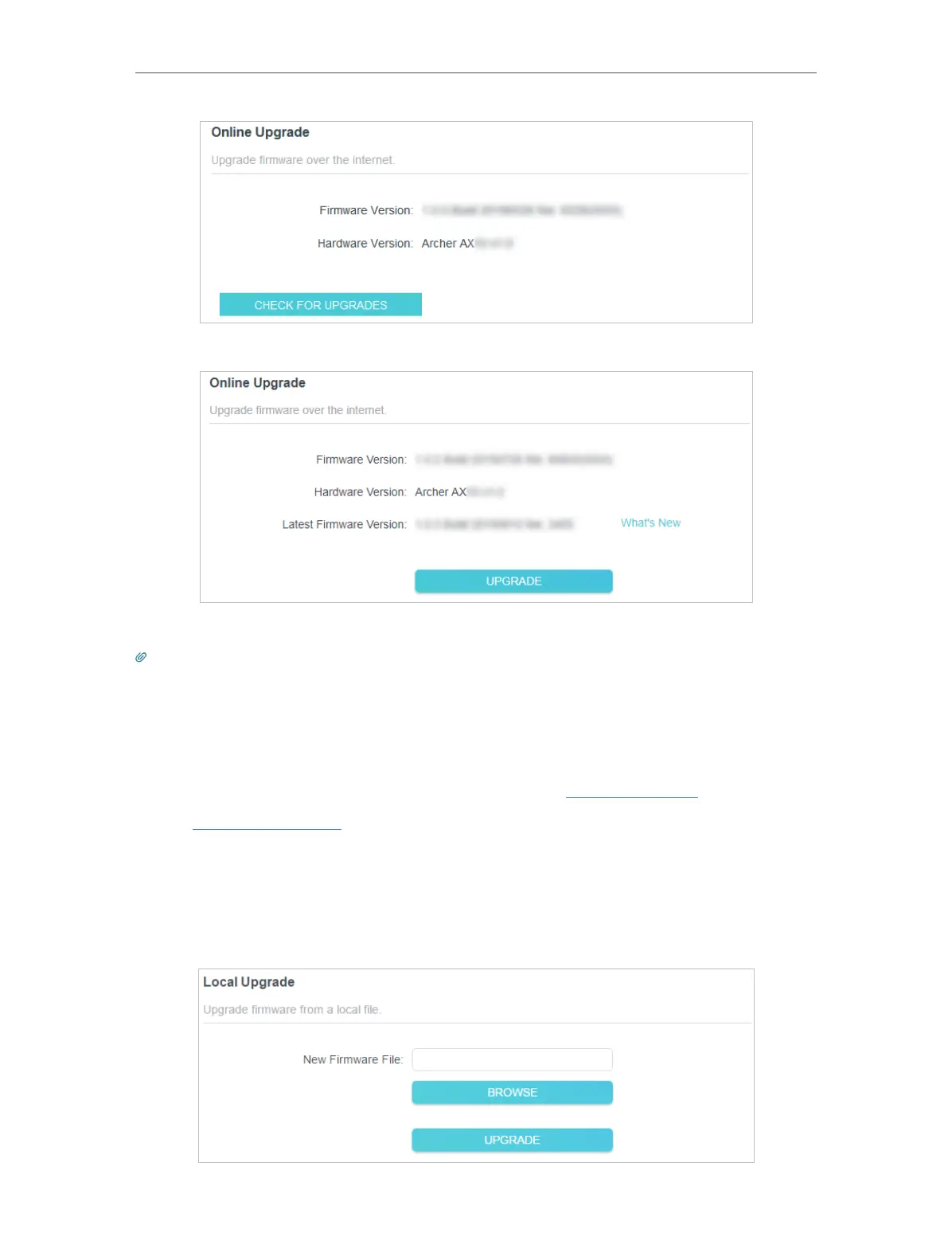 3. Focus on the Online Upgrade section, and click UPGRADE if there is new firmware.