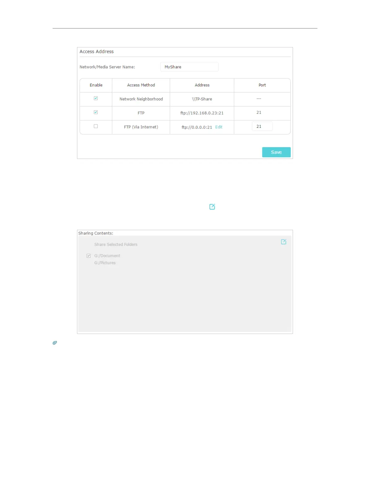 The Share icon appears in the Devices Settings section when more than 5 volumes are connected to the router. You can