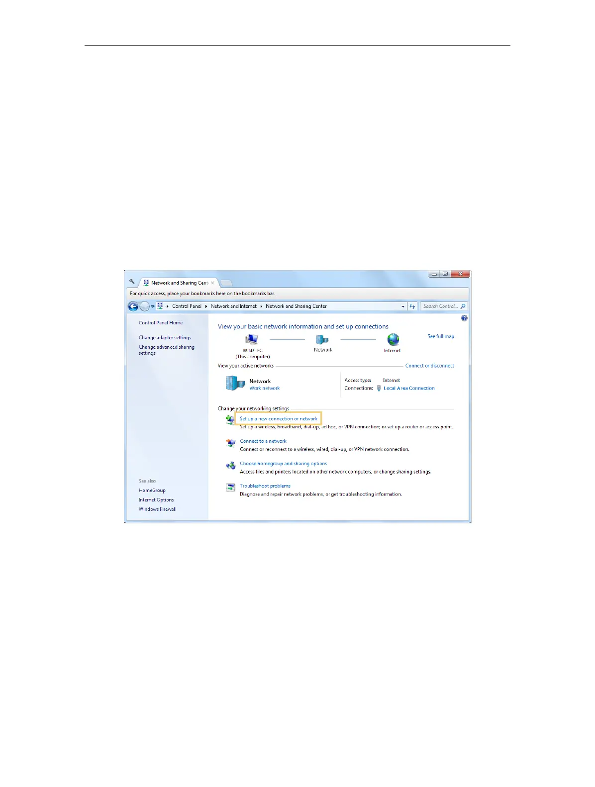 2. Select Set up a new connection or network.