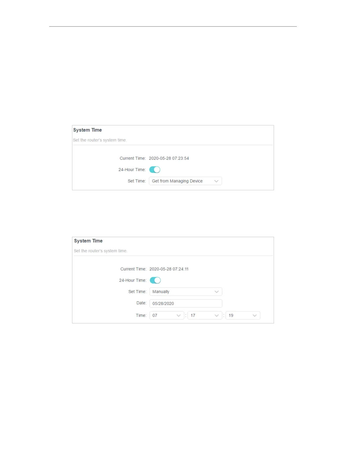 1. In the Set Time field, select Manually.