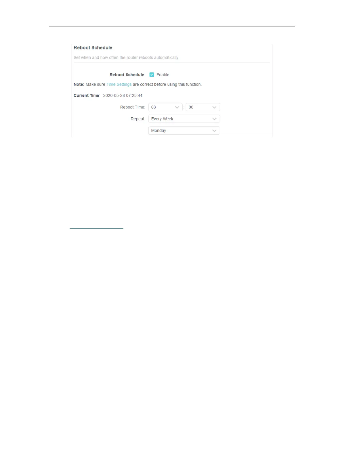 4. Specify the Reboot Time when the router reboots and Repeat to decide how often it