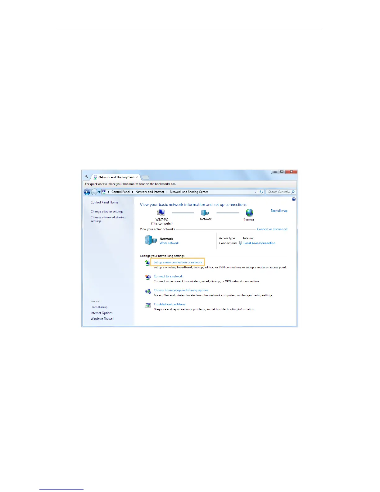 1. Go to Start > Control Panel > Network and Internet > Network and Sharing Center.