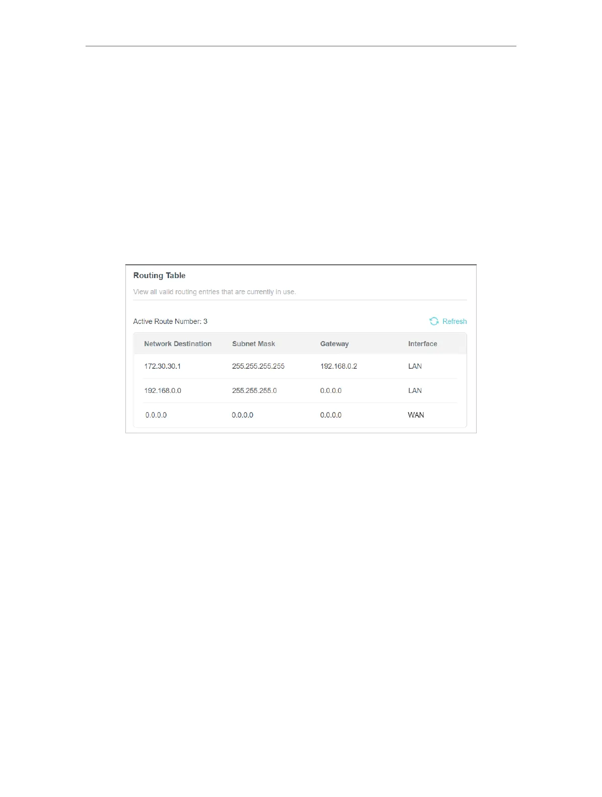 6. Check the Routing Table below. If you can find the entry you’ve set, the static routing