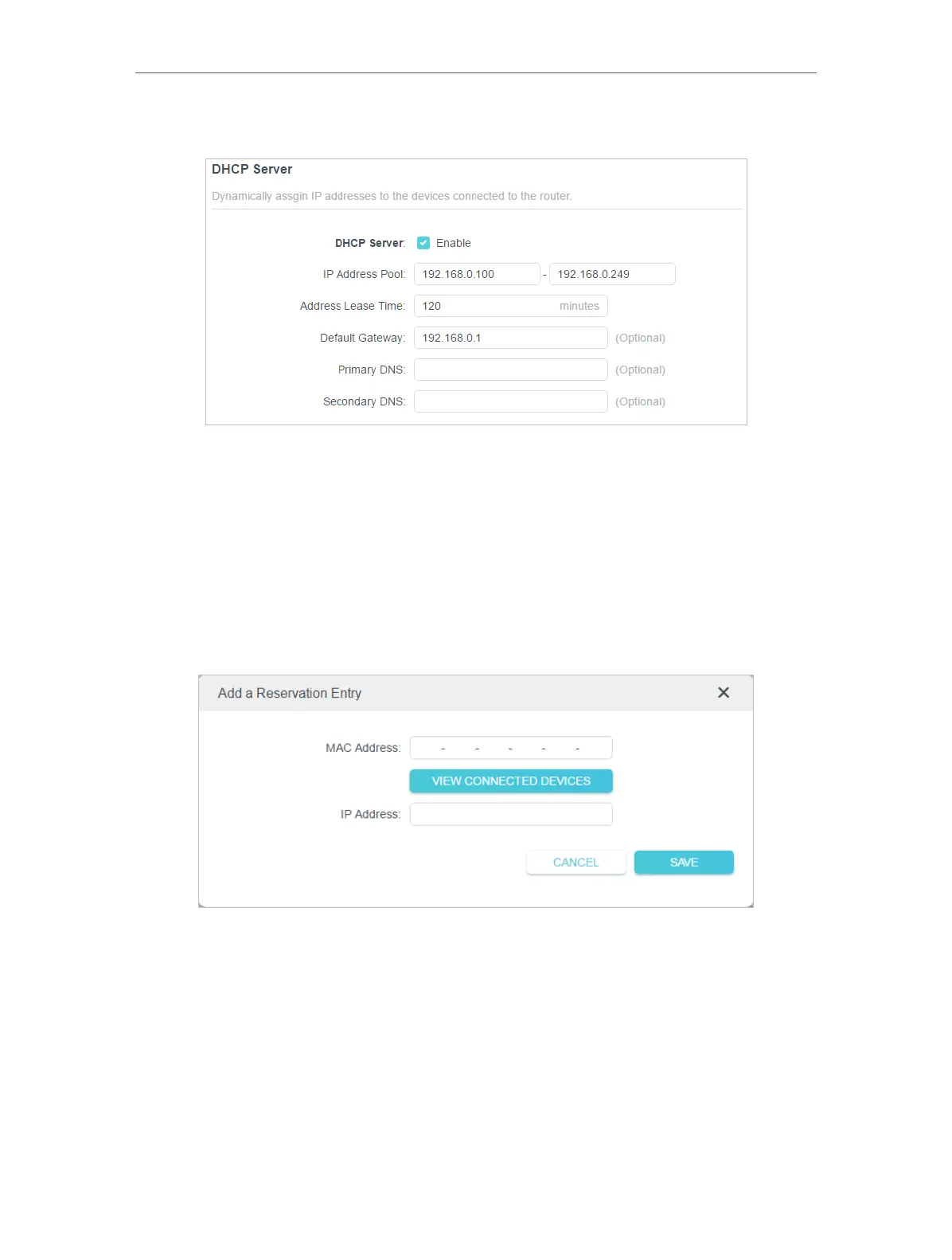 1. Click Add in the Address Reservation section.
