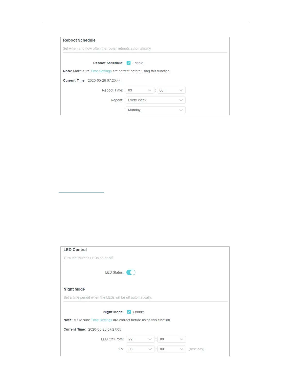 4. Specify the Reboot Time when the router reboots and Repeat to decide how often it
