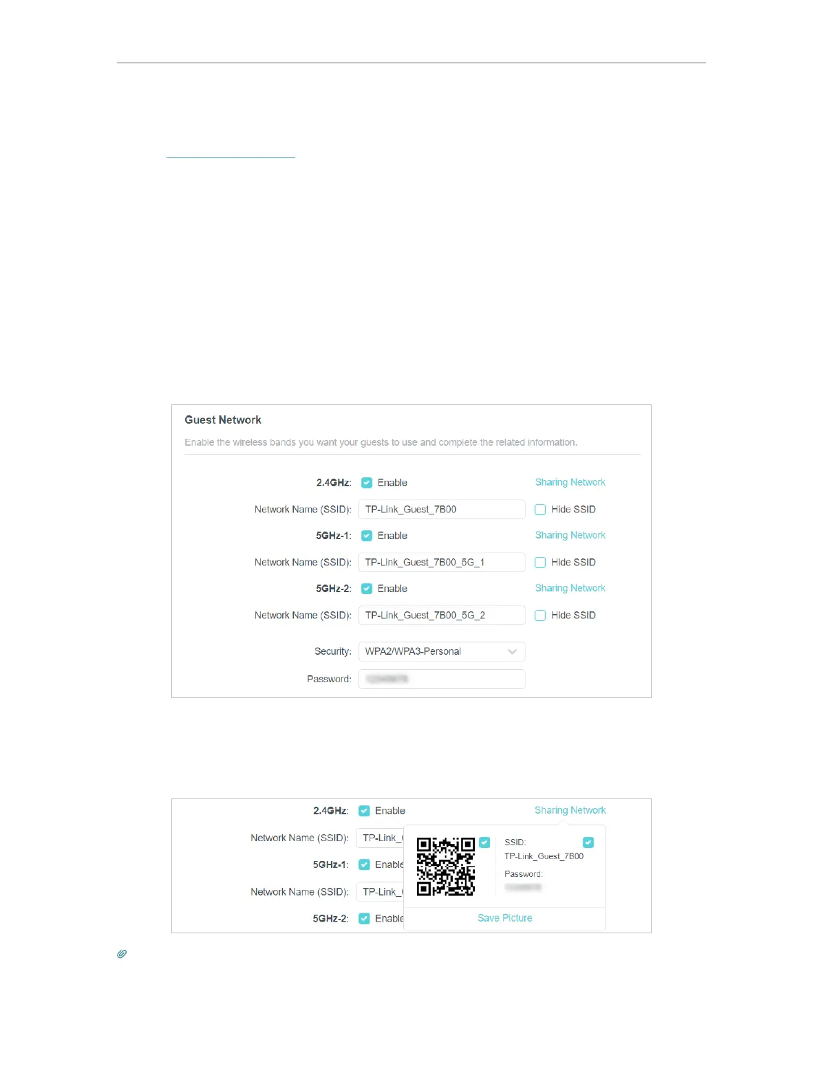 5. You can also click Sharing Network to share the SSID and password to your guests.