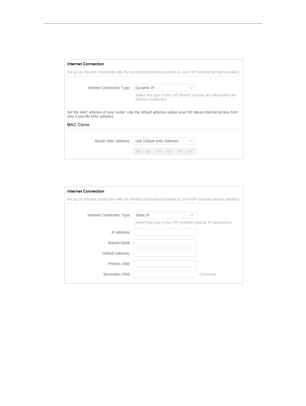 1 ) If you choose Dynamic IP, you need to select whether to clone the MAC address.