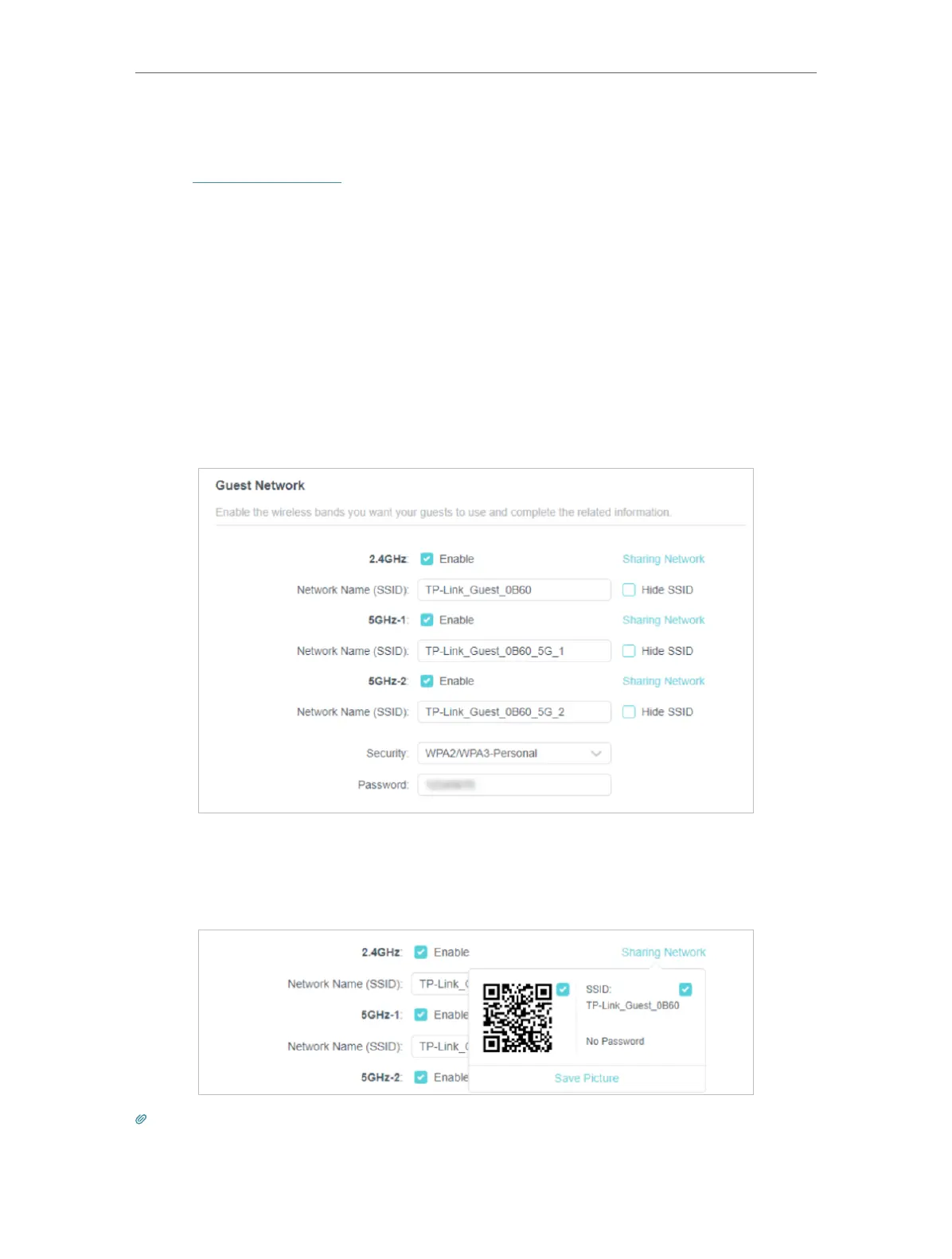 5. You can also click Sharing Network to share the SSID and password to your guests.