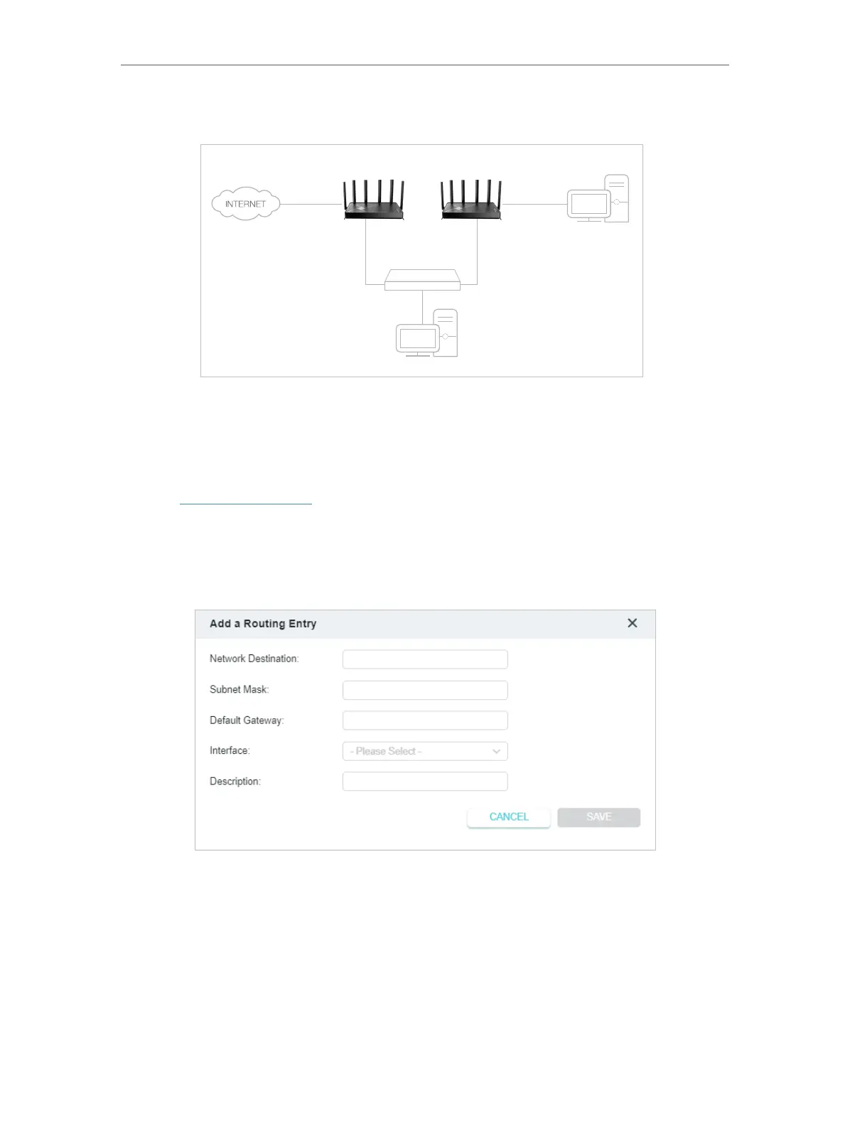 1. Change the routers’ LAN IP addresses to two different IP addresses on the same