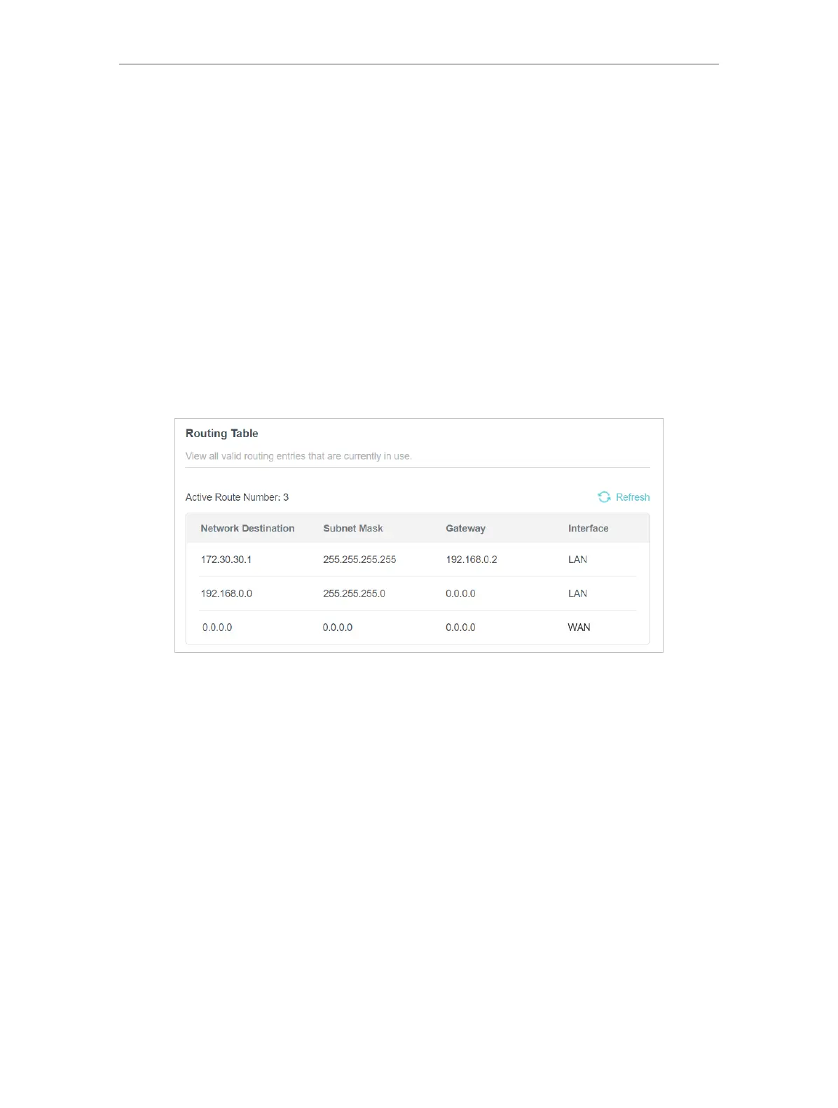 6. Check the Routing Table below. If you can find the entry you’ve set, the static routing