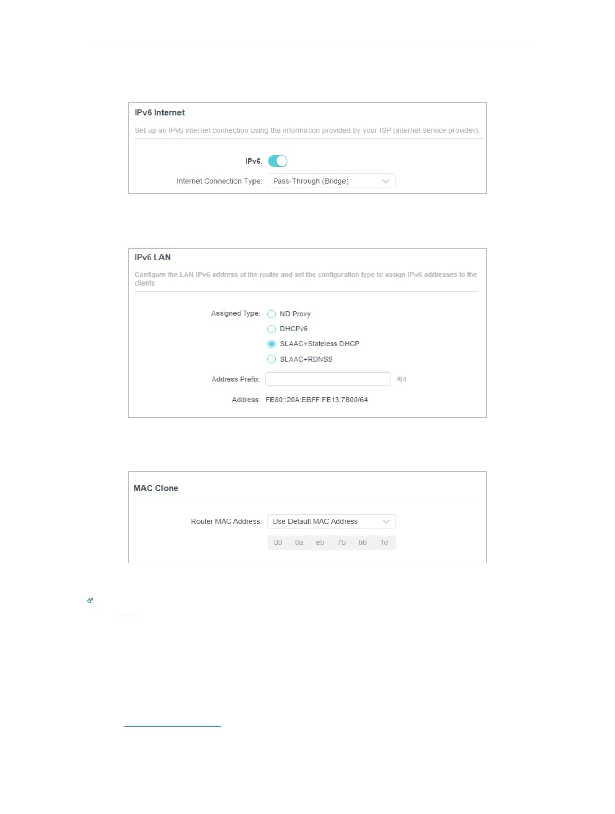 SLAAC+Stateless DHCP. Fill in Address Prefix provided by your ISP, and click SAVE .