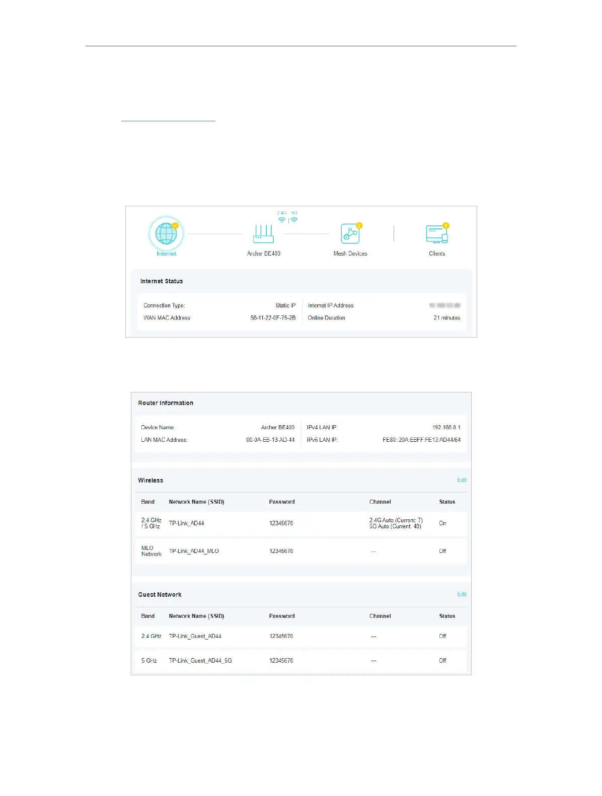 • Click the router to check device status and network settings. You can click Edit to