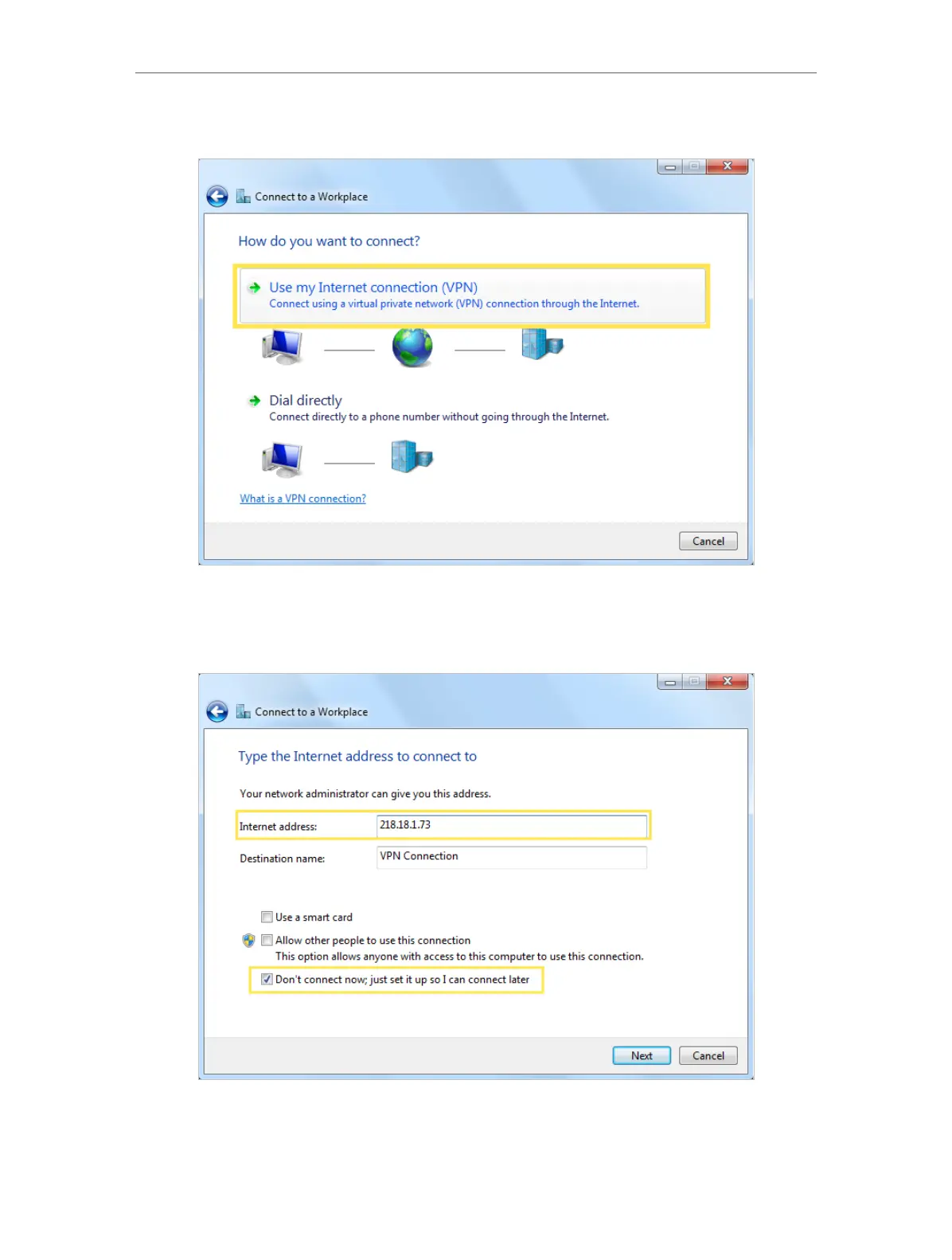 address field, and select the checkbox Don’t connect now; just set it up so I can