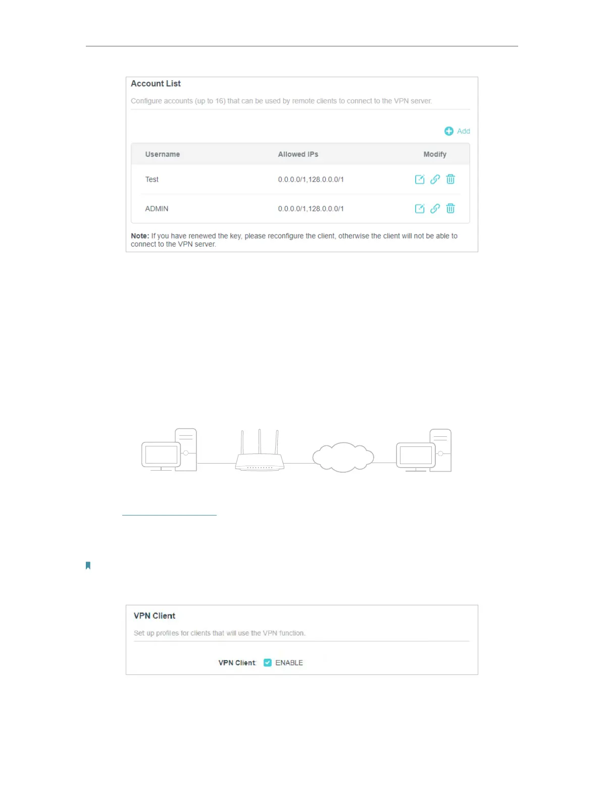 Note: Firmware update may be required to support VPN Client.