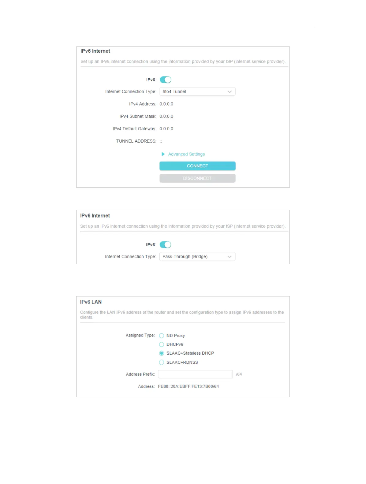 SLAAC+Stateless DHCP. Fill in Address Prefix provided by your ISP, and click SAVE .
