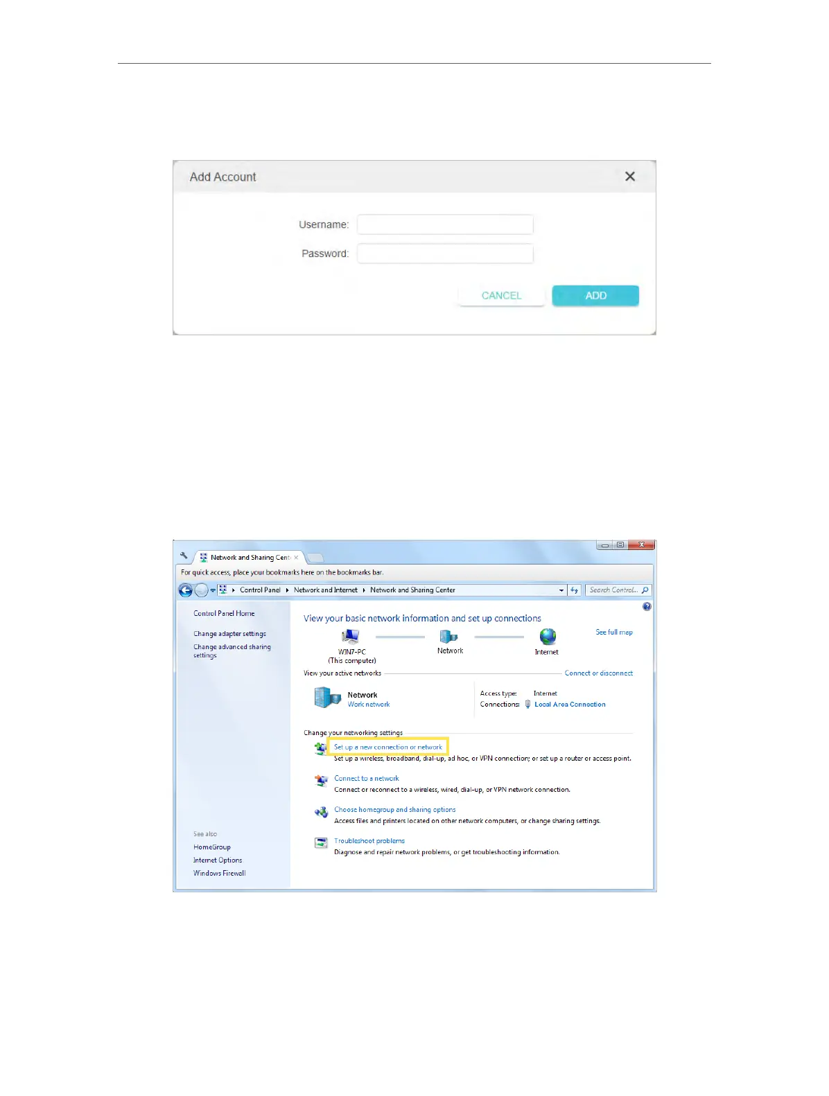 1. Go to Start > Control Panel > Network and Internet > Network and Sharing Center.