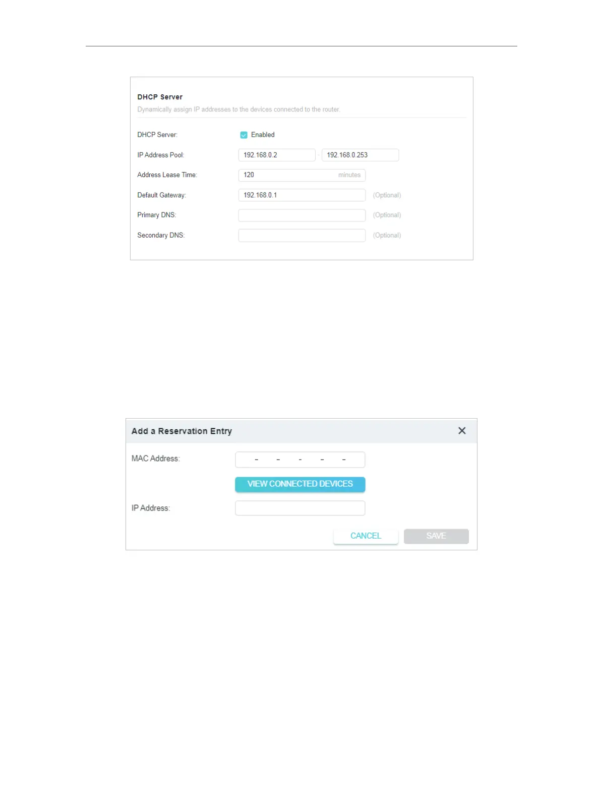 1. Click Add in the Address Reservation section.