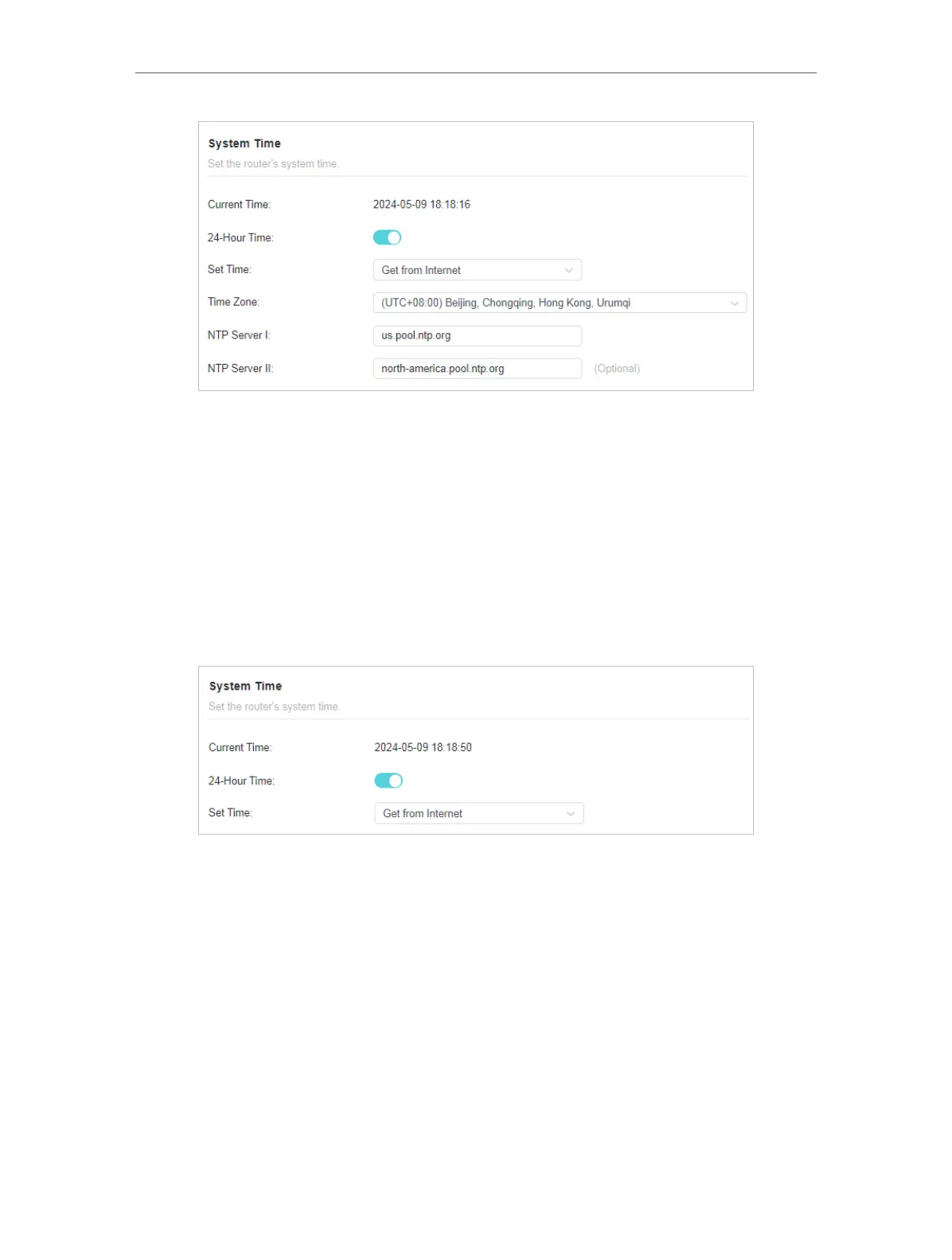 5. (Optional) In the NTP Server II field, enter the IP address or domain name of the