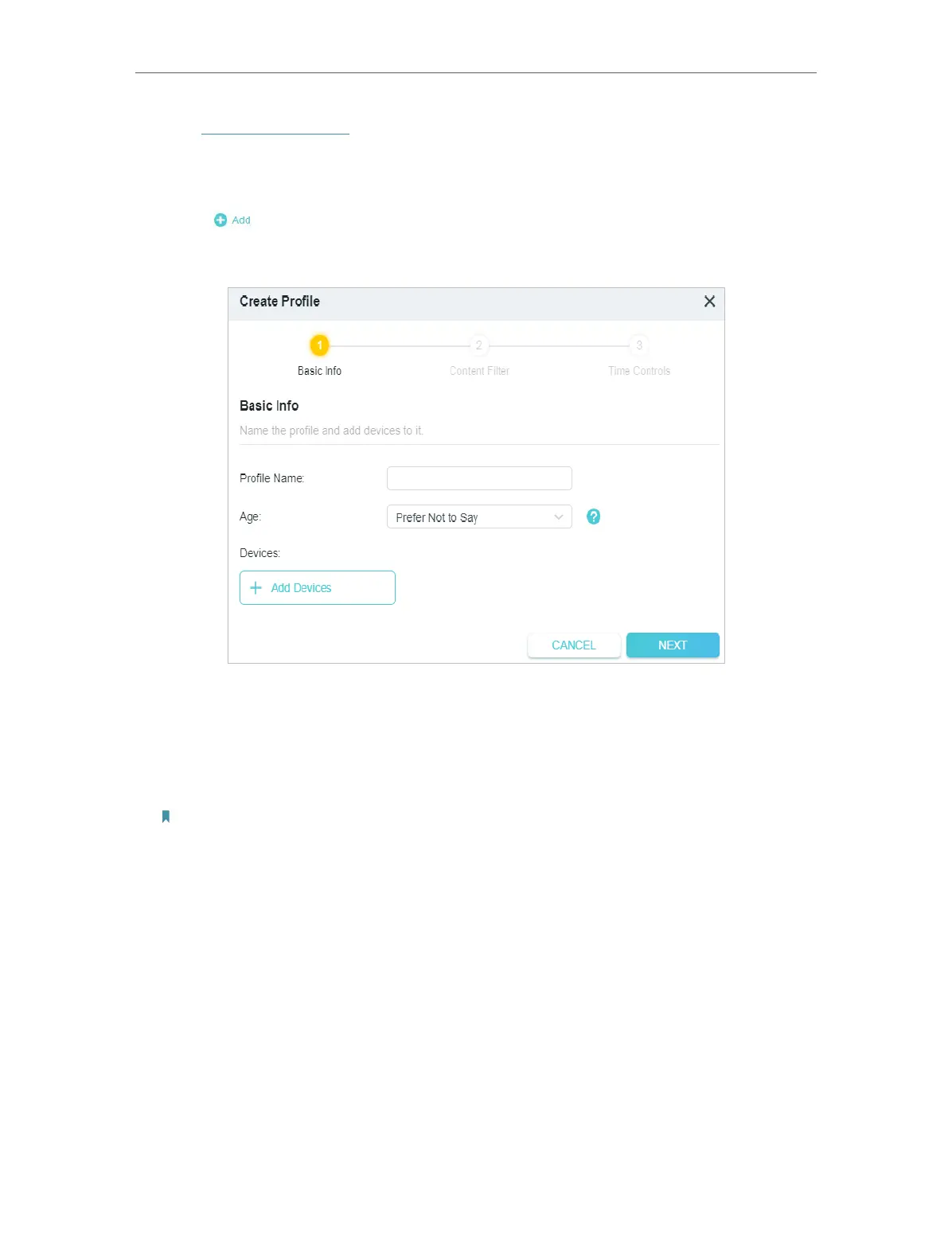 1 ) Enter a name for the profile to make it easier to identify. Set the age to get the