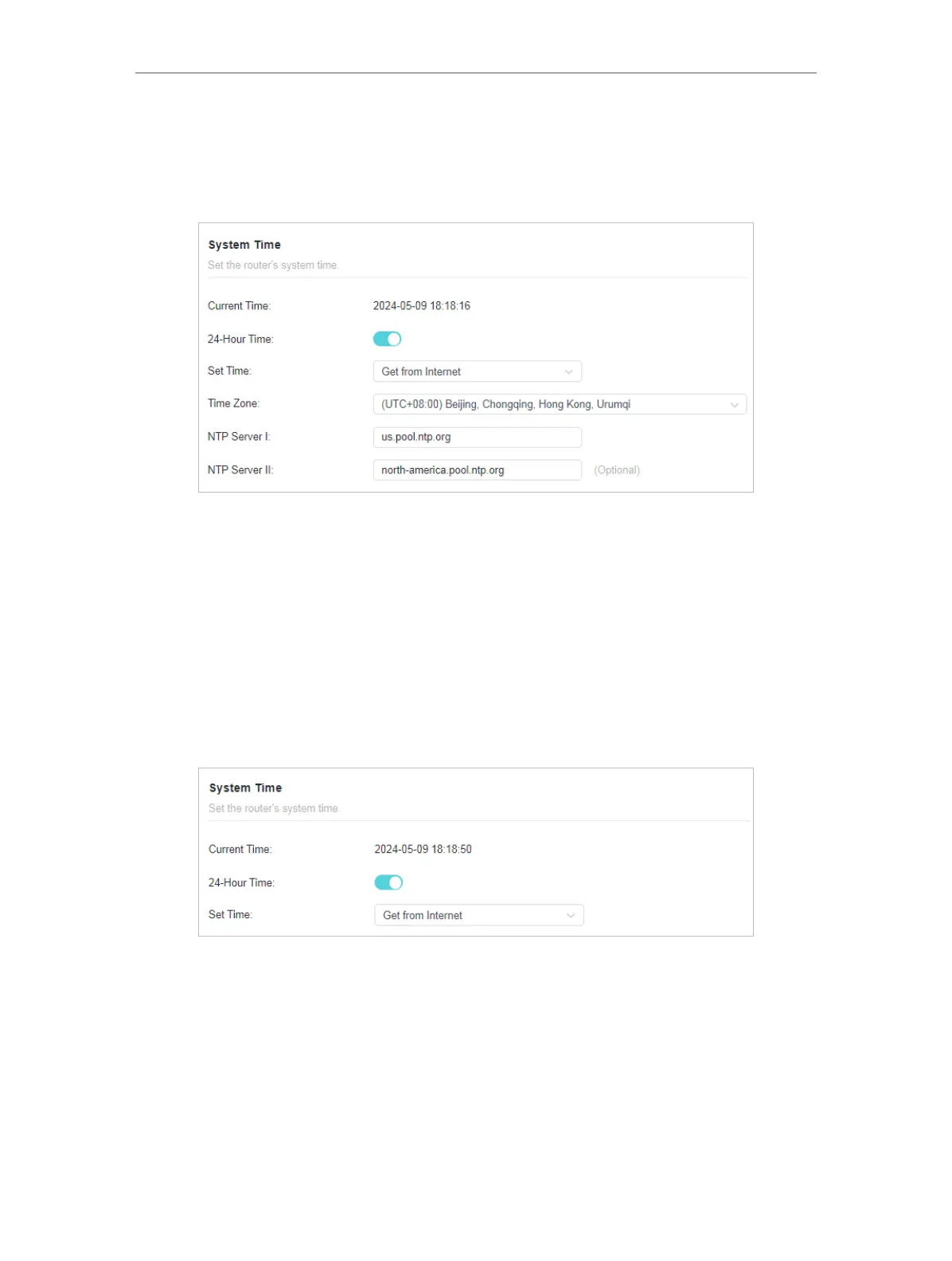 5. (Optional) In the NTP Server II field, enter the IP address or domain name of the