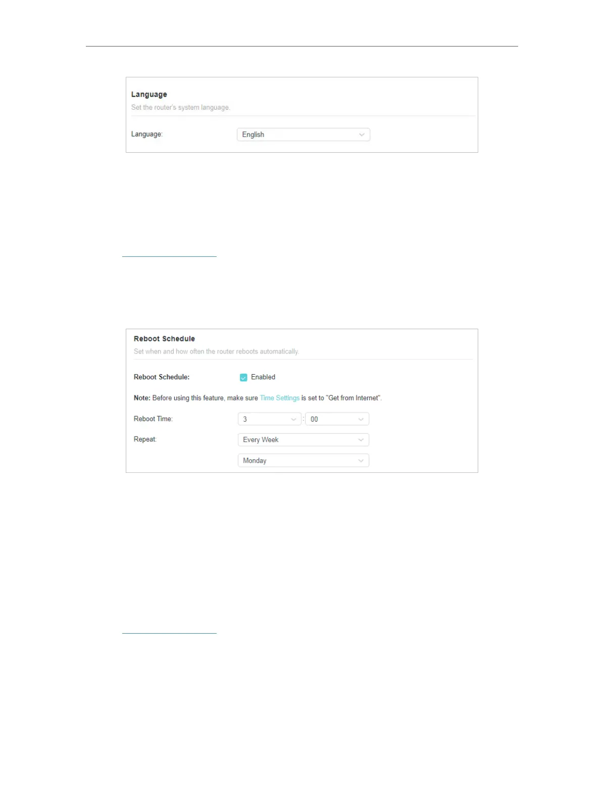 4. Specify the Reboot Time when the router reboots and Repeat to decide how often it