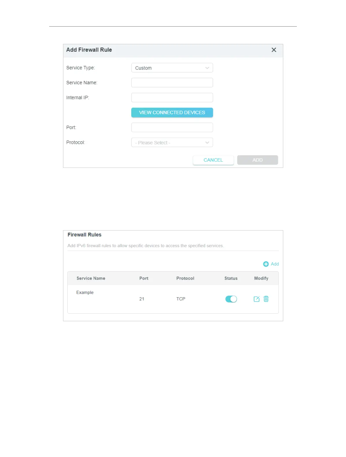 7. Click SAVE, and the newly created IPv6 firewall rule will appear in Firewall Rules.