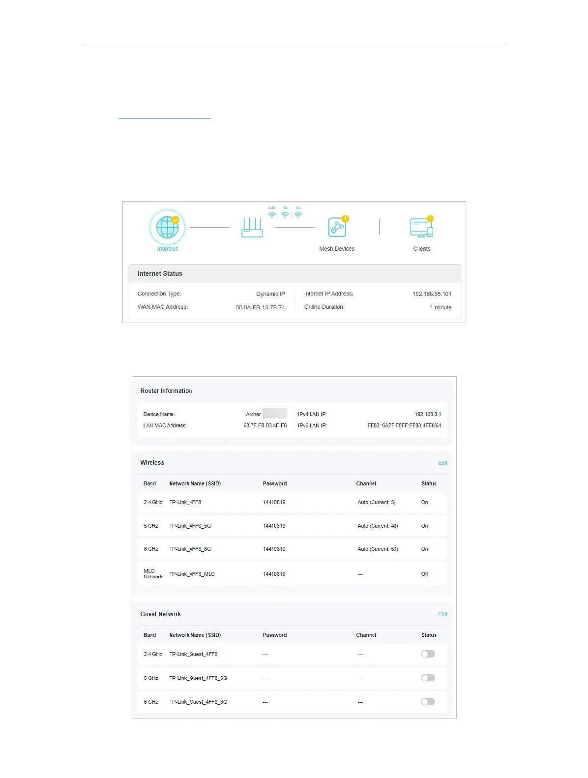 the wireless network or guest network, or click Edit to change related settings.