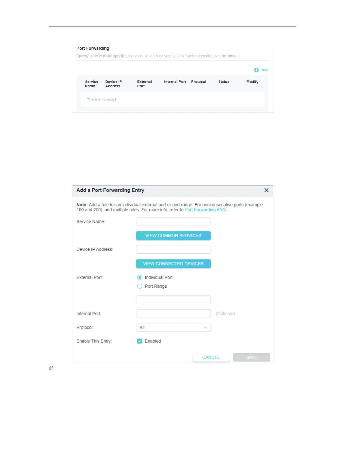• You can add multiple port forwarding rules if you want to provide several services in a router. Please note that the