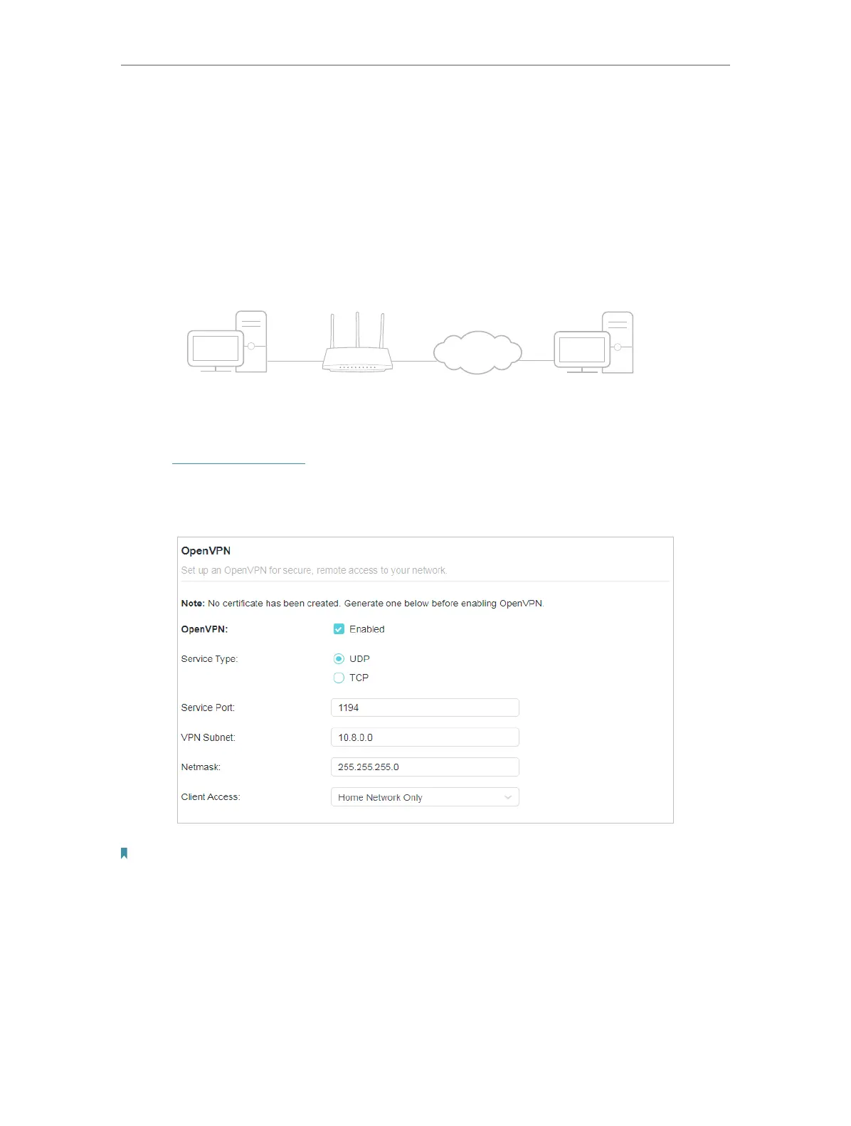 • The first time you configure the OpenVPN Server, you may need to generate a certificate before you enable the VPN