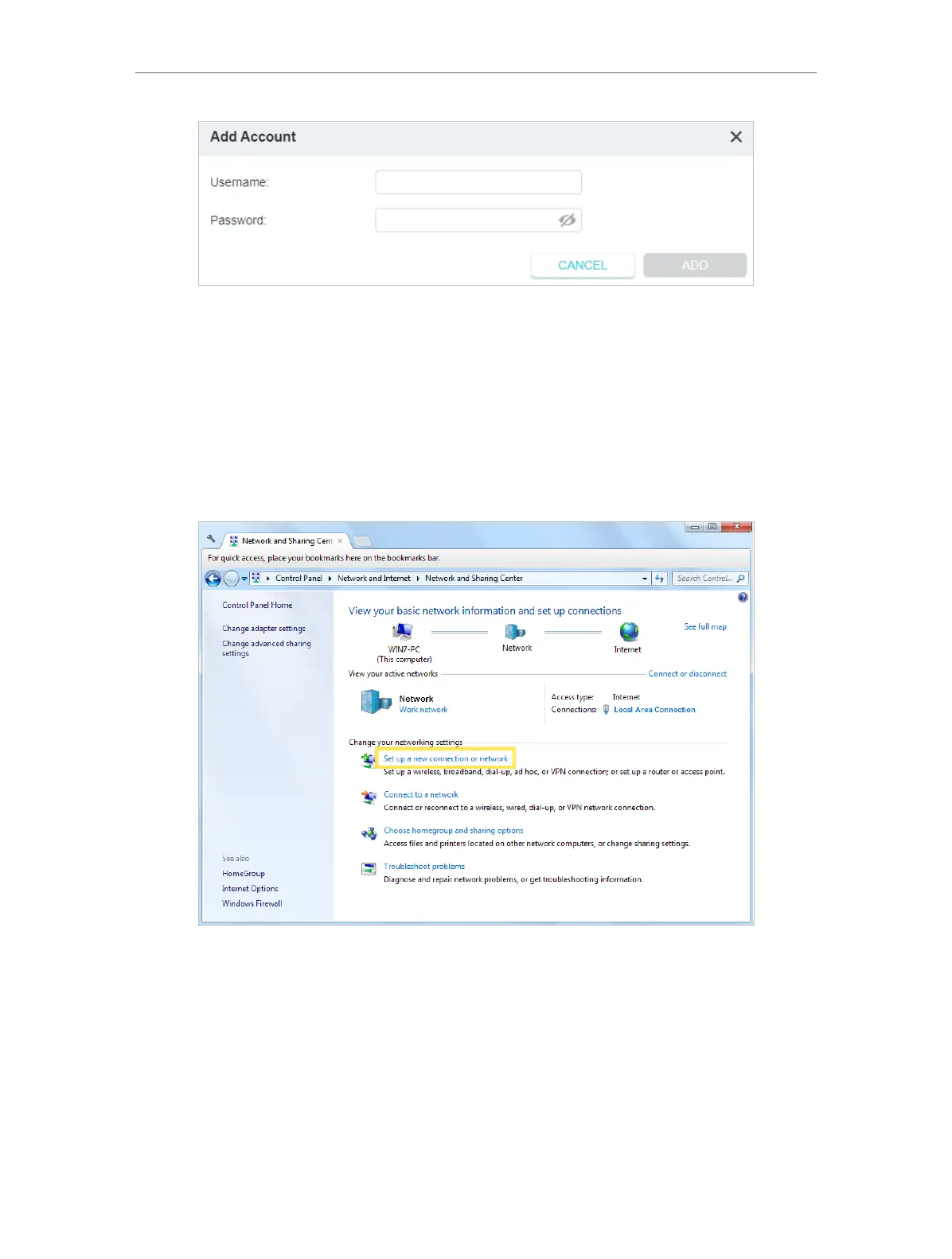 1. Go to Start > Control Panel > Network and Internet > Network and Sharing Center.